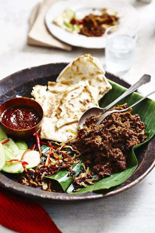 Serve with white rice, one or two vegetable dishes, sambals and prawn crisps and Reuben Solomon’s Harissa Relish.